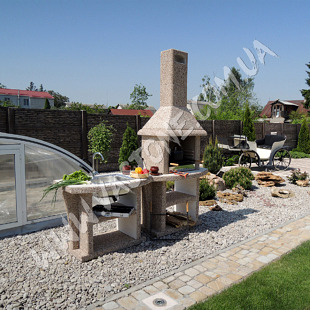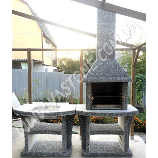 Камин барбекю «Каир» с большим столом. Теперь это не просто мангал — это самостоятельная кухня в вашем саду. Здесь и вместительная жаровня, и удобный стол для приготовления пищи, и мойка. Все в комплекте и под рукой, что в первую очередь оценит настоящий гурман и энтузиаст отдыха на свежем воздухе. К тому же вся конструкция абсолютно разборная и не занимает много места. Благодаря угловой форме барбекю можно поставить в углу участка, что будет удачным решением для людей с небольшой территорией отведенной под сад.