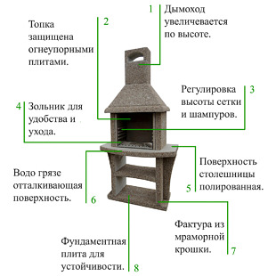 Камин-барбекю Каир заслуженно считается первопроходцем и самым популярным мангалом из мытого бетона. Его уникальность состоит в том что он может вписаться в абсолютно любую окружающую среду, не важно в каком стиле выполнен ваш дом, смотреться он будет отлично. А главное не занимает много места и при этом очень удобен для приготовления пищи на углях. Особенно вас порадует вместительность жаровни и его приятный вид напоминающий домашний и уютный камин.