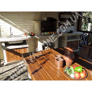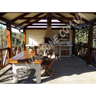 Разборной стационарный мангал “Рио” прекрасное дополнение Вашего домашнего места отдыха, выполнил только из высококачественных природных материалов, произведен по технологии мытого бетона, легко даст фору металлическим мангалам, кирпичным печам. Он представляет собой очень устойчивую конструкцию, а специально подобранная высота топки, не позволит маленьким детям добраться до открытого огня. В уличном камине, вы легко сможете приготовить любые блюда, и будьте уверены: они будут вкуснее и ароматнее чем на стационарной плите, а желание творить появится даже у самых равнодушных, ведь готовить на свежем воздухе всегда увлекательнее чем в помещение. По фото барбекю у вас без труда получится представить как он впишется в интерьер Вашего двора, а наши менеджеры помогут сделать правильный выбор, и с радостью ответят на все волнующие вопросы.
